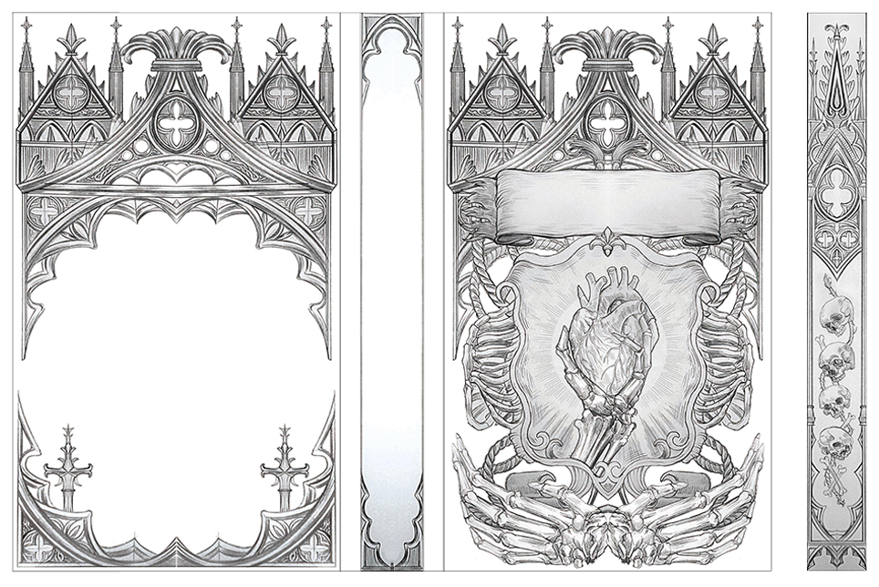- Hardcover artwork (front, back and spine) with foil details