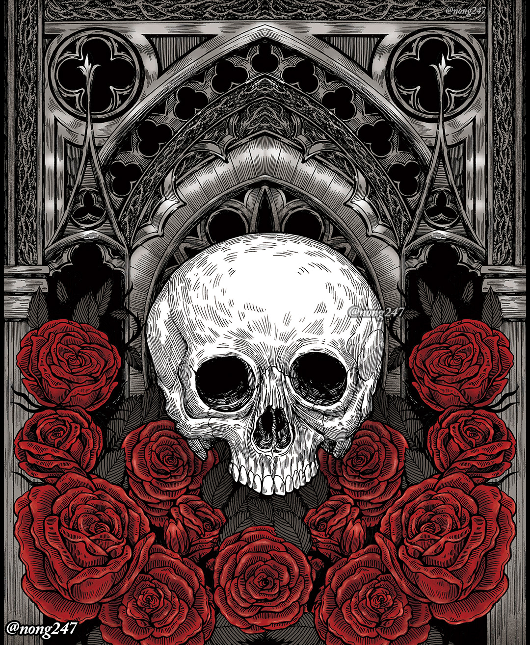 Since I already love drawing skulls, Gothic architecture, and roses,